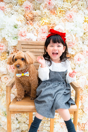 ご家族での撮影参加はもちろん、ペットとの撮影も承ります。(※必ずご予約時にご相談ください。)